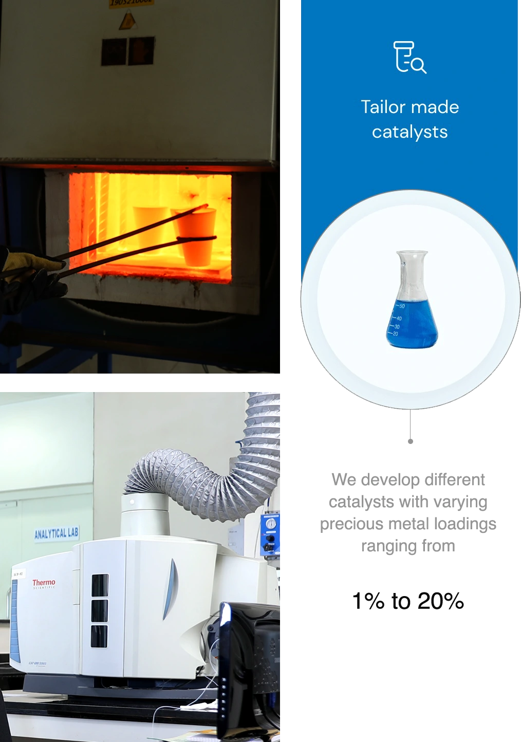 We design and supply premium precious metal–based catalysts tailored for pharmaceutical, agrochemical, and fine chemical processes . With on-site pilot testing, monthly inventory reviews, and closed-loop metal recovery, we enable customers to speed scale-up, reduce process steps, and secure supply predictability. Our integrated approach drives operational efficiency while minimizing environmental impact and supporting regulatory compliance.