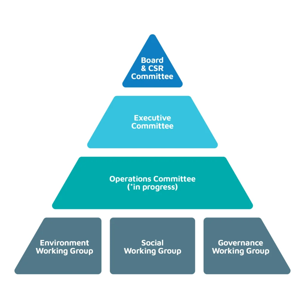 The Board & CSR Committee provides top-level direction and governance, ensuring ESG principles are integrated into our purpose, values, and business strategy.